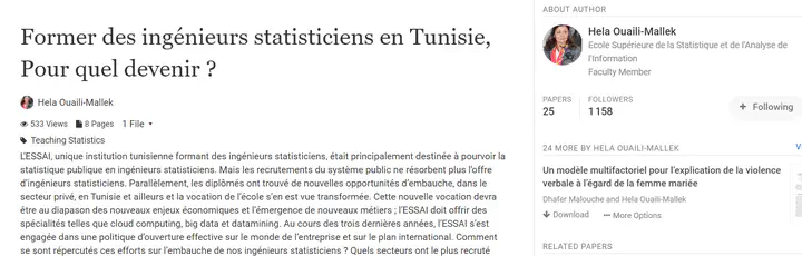 L’ESSAI, unique institution tunisienne formant des ingénieurs statisticiens, était principalement destinée à pourvoir la statistique publique en ingénieurs statisticiens. Mais les recrutements du système public ne résorbent plus l’offre d’ingénieurs statisticiens. Parallèlement, les diplômés ont trouvé de nouvelles opportunités d’embauche, dans le secteur privé, en Tunisie et ailleurs et la vocation de l’école s’en est vue transformée. Cette nouvelle vocation devra être au diapason des nouveaux enjeux économiques et l’émergence de nouveaux métiers ; l’ESSAI doit offrir des spécialités telles que cloud computing, big data et datamining. Au cours des trois dernières années, l’ESSAI s’est engagée dans une politique d’ouverture effective sur le monde de l’entreprise et sur le plan international. Comment se sont répercutés ces efforts sur l’embauche de nos ingénieurs statisticiens ? Quels secteurs ont le plus recruté nos diplômés ? Vers quelles spécialités statistiques se sont-ils orientés ? Le but de ce travail sera de répondre à ces questions à partir d’une enquête effectuée, en novembre 2014, auprès de nos diplômés.